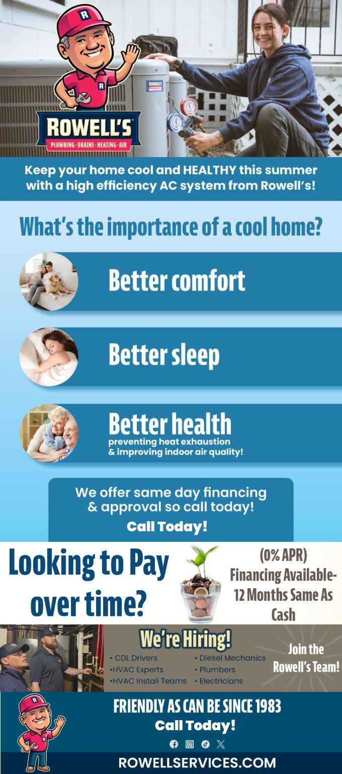 Keep your home cool and healthy this summer with a high efficiency AC system from Rowell's!