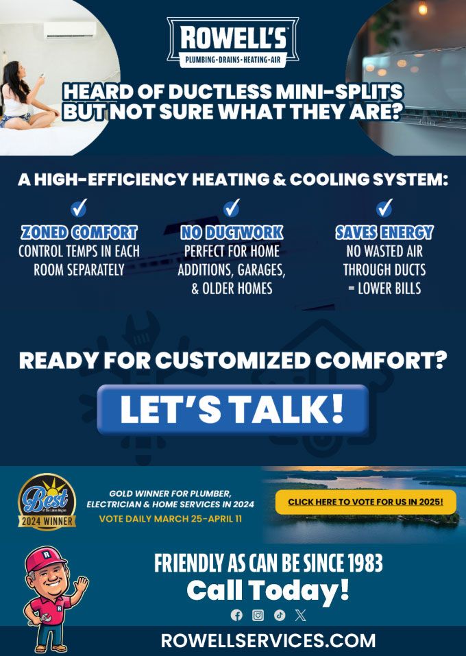 "Friendly As Can Be Since 1983!" When you need help with your plumbing, drains, heating, cooling or electrical in Candia, you can always rely on Rowell's Services! Call us now or book online!