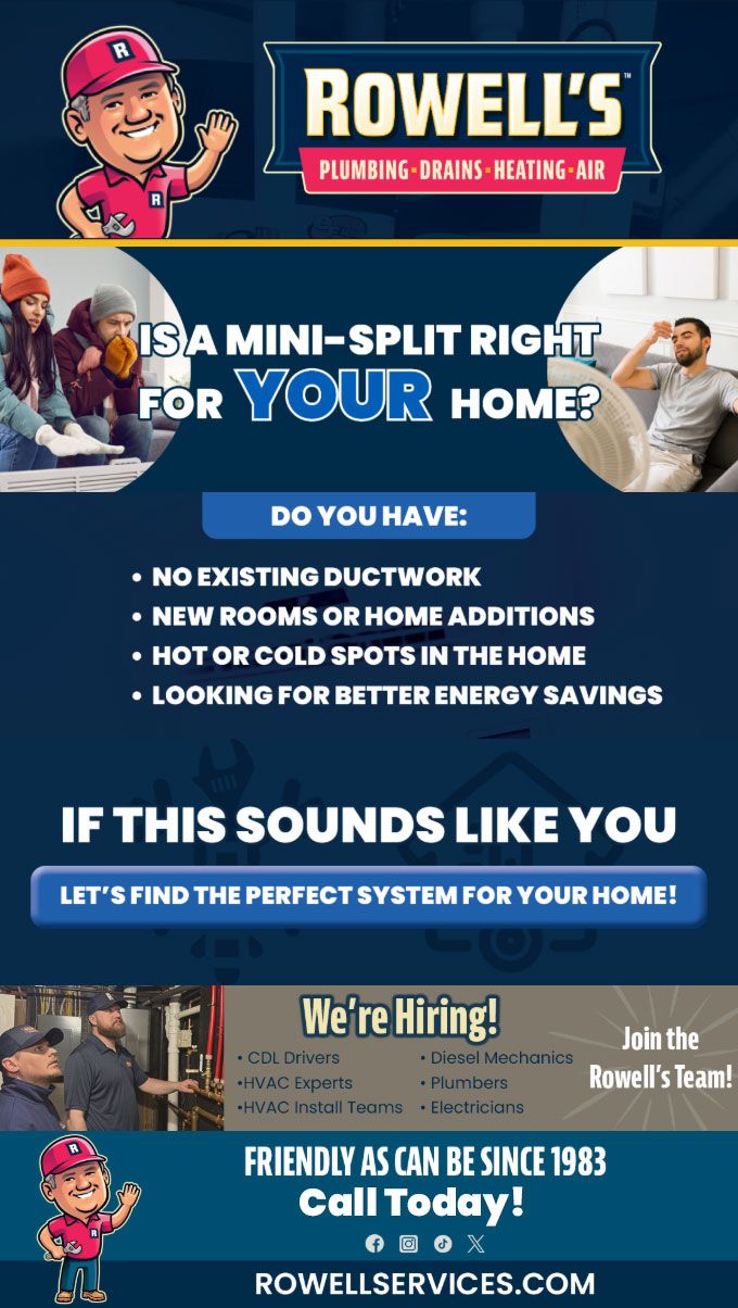 "Friendly As Can Be Since 1983!" When you need help with your plumbing, drains, heating, cooling or electrical in Candia, you can always rely on Rowell's Services! Call us now or book online!